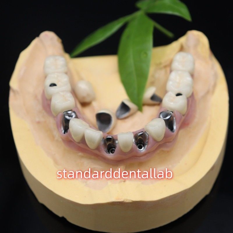 Metallkeramikkronen für Zahnimplantate auf einer Malo-Brücke, die mit Schrauben festgehalten werden, sind eine spezifische Art der Zahnrestaurierung, die zur Ersetzung fehlender Zähne oder eines vollständigen Zahnbogens verwendet wird.Die Kombination von ZahnimplantatenHier sind einige wichtige Punkte zu dieser Restaurierung: